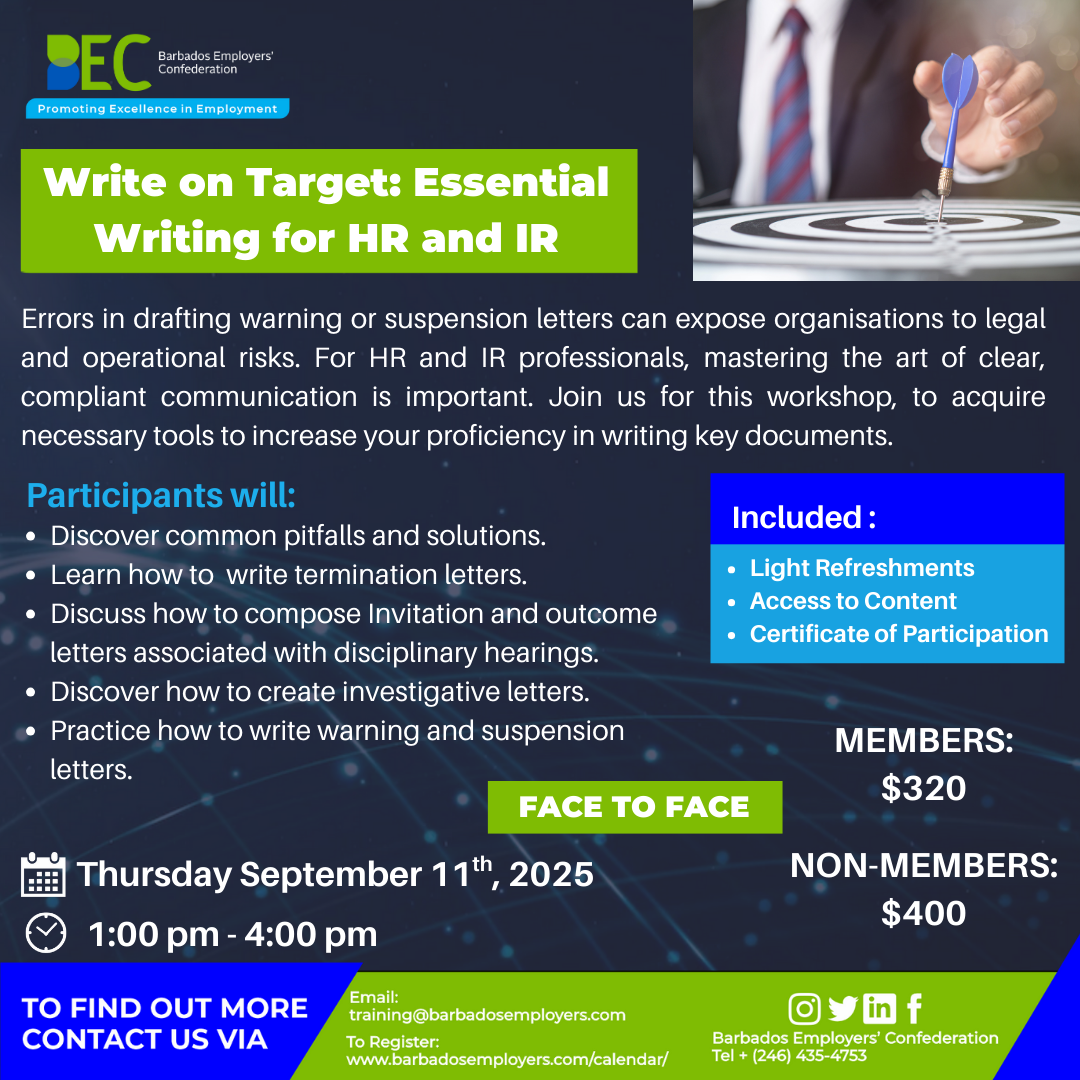 Letters and reports are key forms of documentation in the employment relationship making written communication skills an essential element in the toolkit of any HR / IR practitioner. While many persons know what information they would like to capture in the various types of letters; these documents cover such a broad spectrum of issues that they very often struggle to construct them.