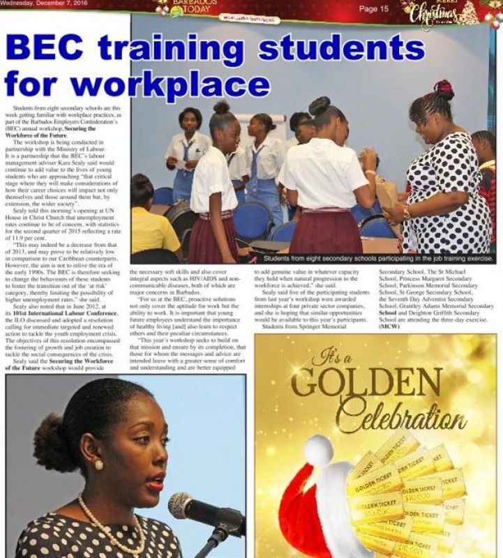 Members are always welcomed and encouraged to participate in this programme to provide the students with their great experience and knowledge as the BEC seeks to ensure that students are as nentally prepared as possible for one of their next great steps; work life. Are you a member of the Barbados Employers’ Confederation and you wish to participate in this programme? Contact the BEC at 435-4753 or via email to becon@barbadosemployers.com or to the Member Relations Coordinator at leah@barbadosemployers.com .